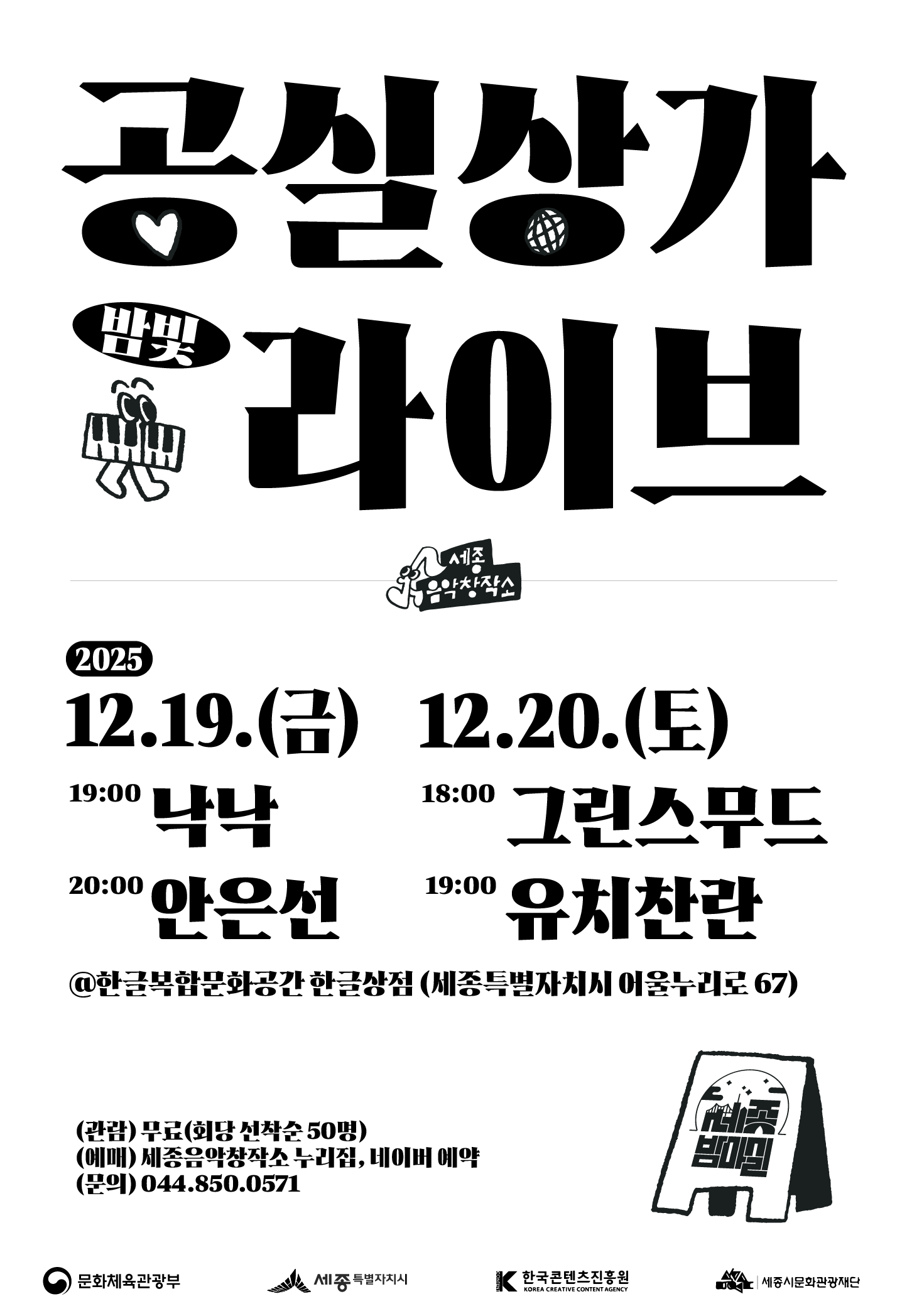 세종음악창작소는 뮤지션 여러분의 음악활동 공간을 지원합니다.