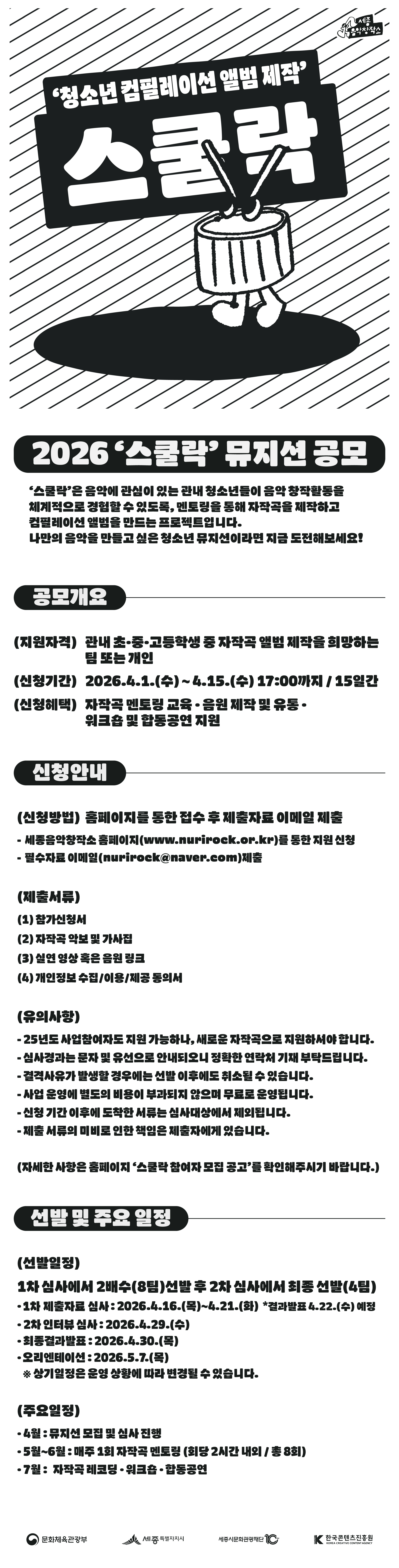 공고 [공고] 2026 '청소년 뮤지션 지원' 스쿨락 참여자 모집 (4.1.~4.15.)