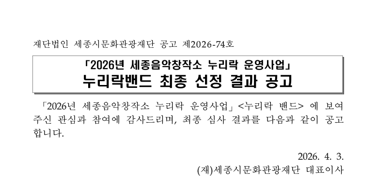 공고 [공고] 2026 누리락밴드 최종 선정 결과 공고