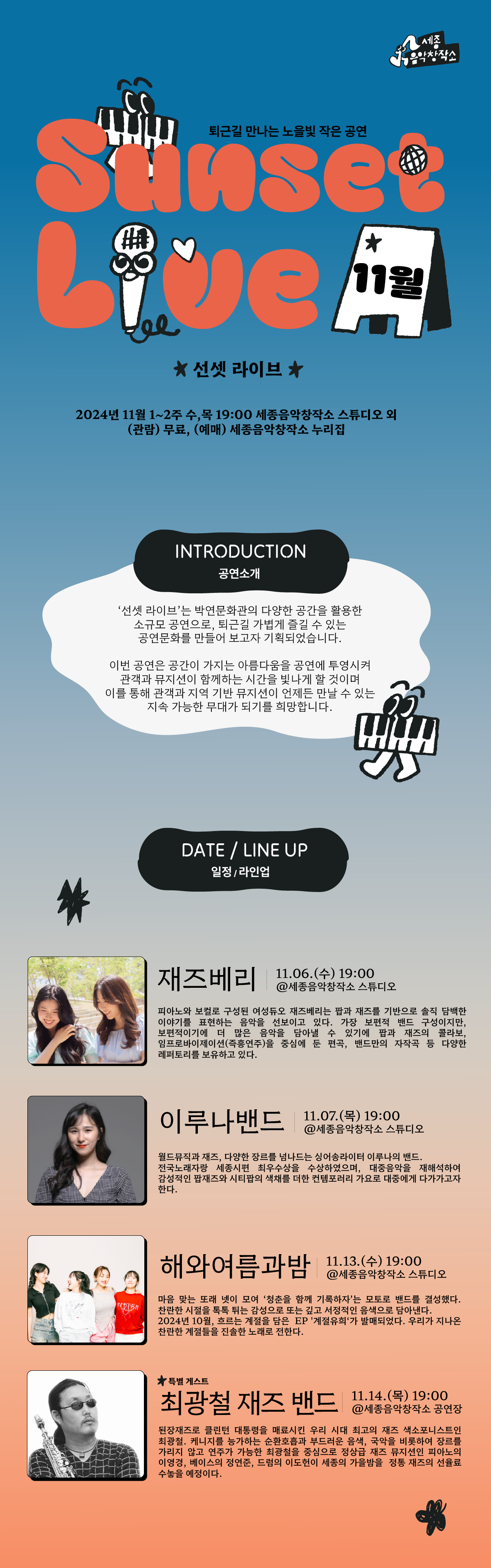 세종음악창작소는 뮤지션 여러분의 음악활동 공간을 지원합니다.