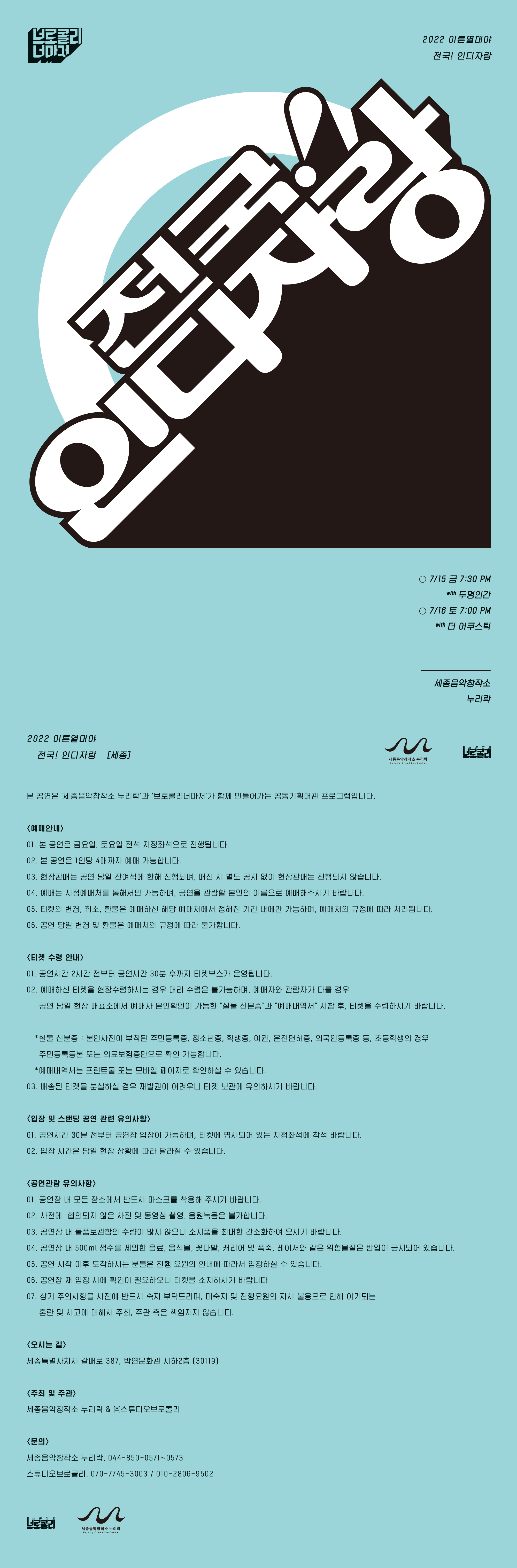 1회차 7/15(금) 19:30 , 2회차 7/16(토) 19:00 / 회당 120분