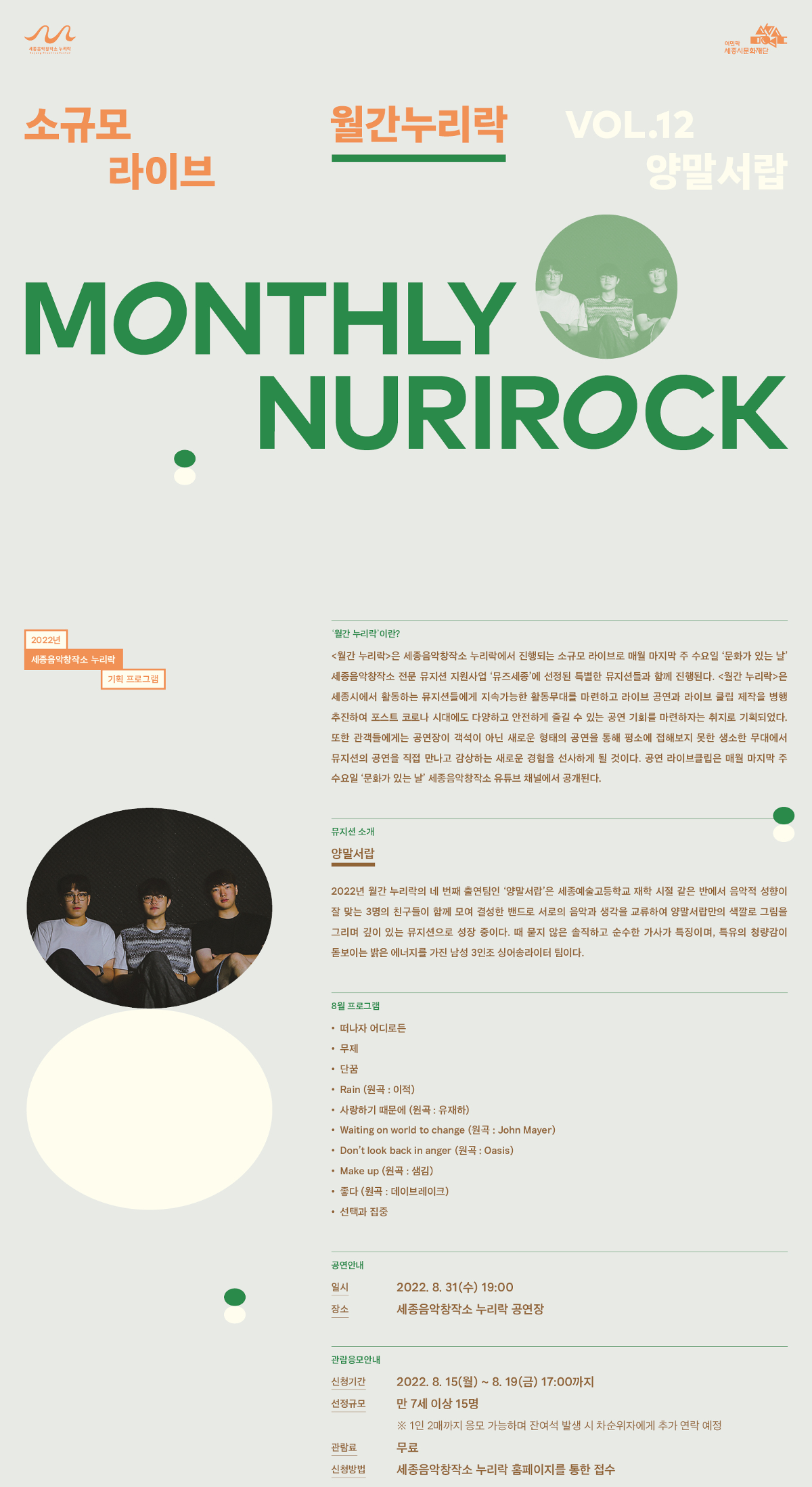 세종음악창작소는 뮤지션 여러분의 음악활동 공간을 지원합니다.