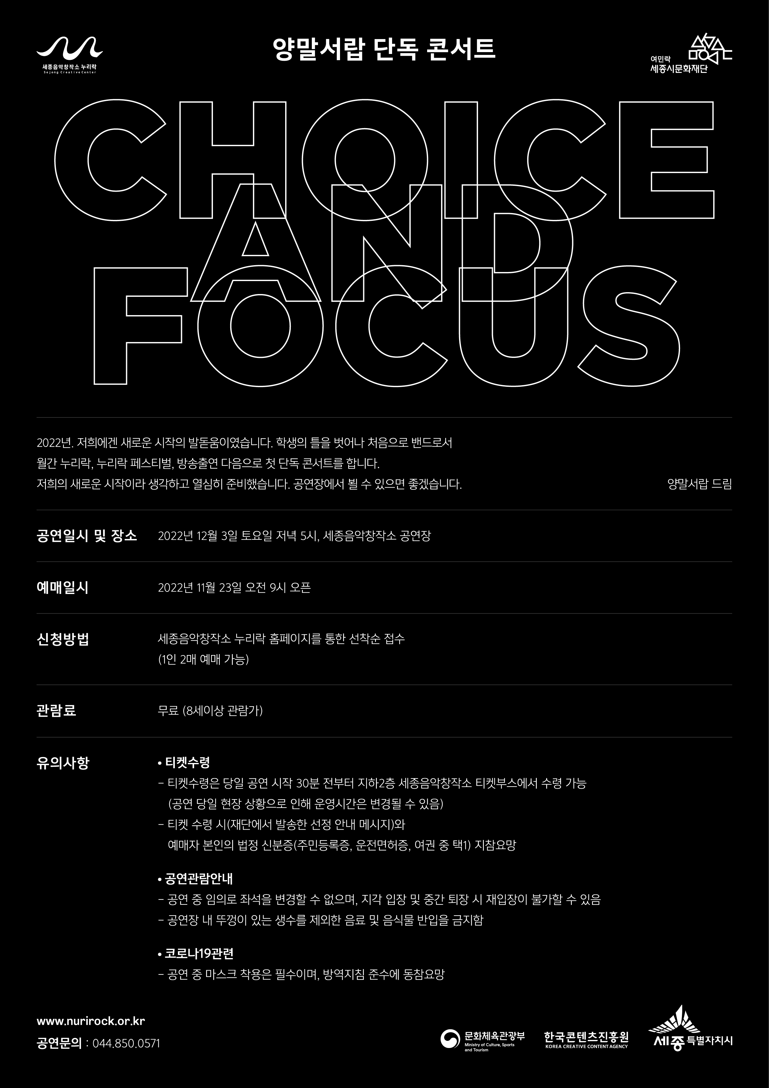 세종음악창작소는 뮤지션 여러분의 음악활동 공간을 지원합니다.